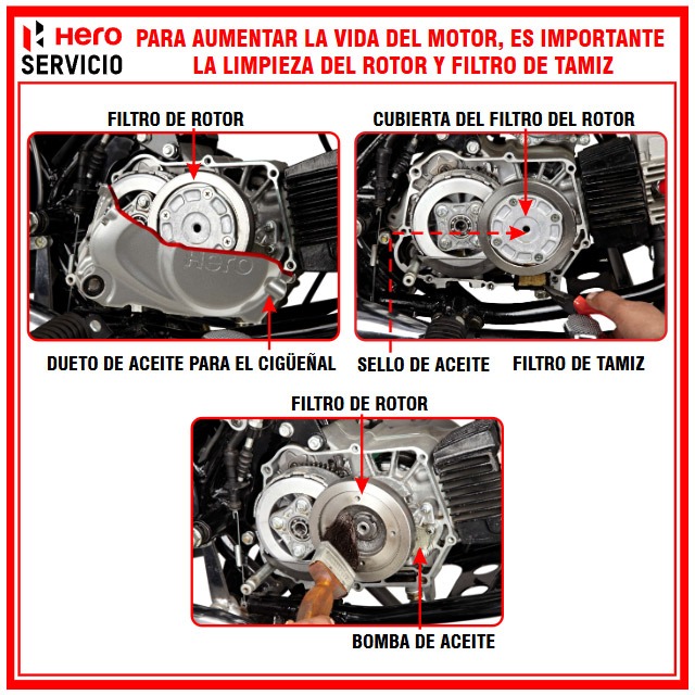 Tu motocicleta es una inversión productiva. Limpiar tu filtro centrífugo a tiempo no es un gasto, es el seguro de vida que le garantizará a tu motor Hero miles de kilómetros más de recorrido. ¡Revisa hoy tu kilometraje y agenda tu servicio!